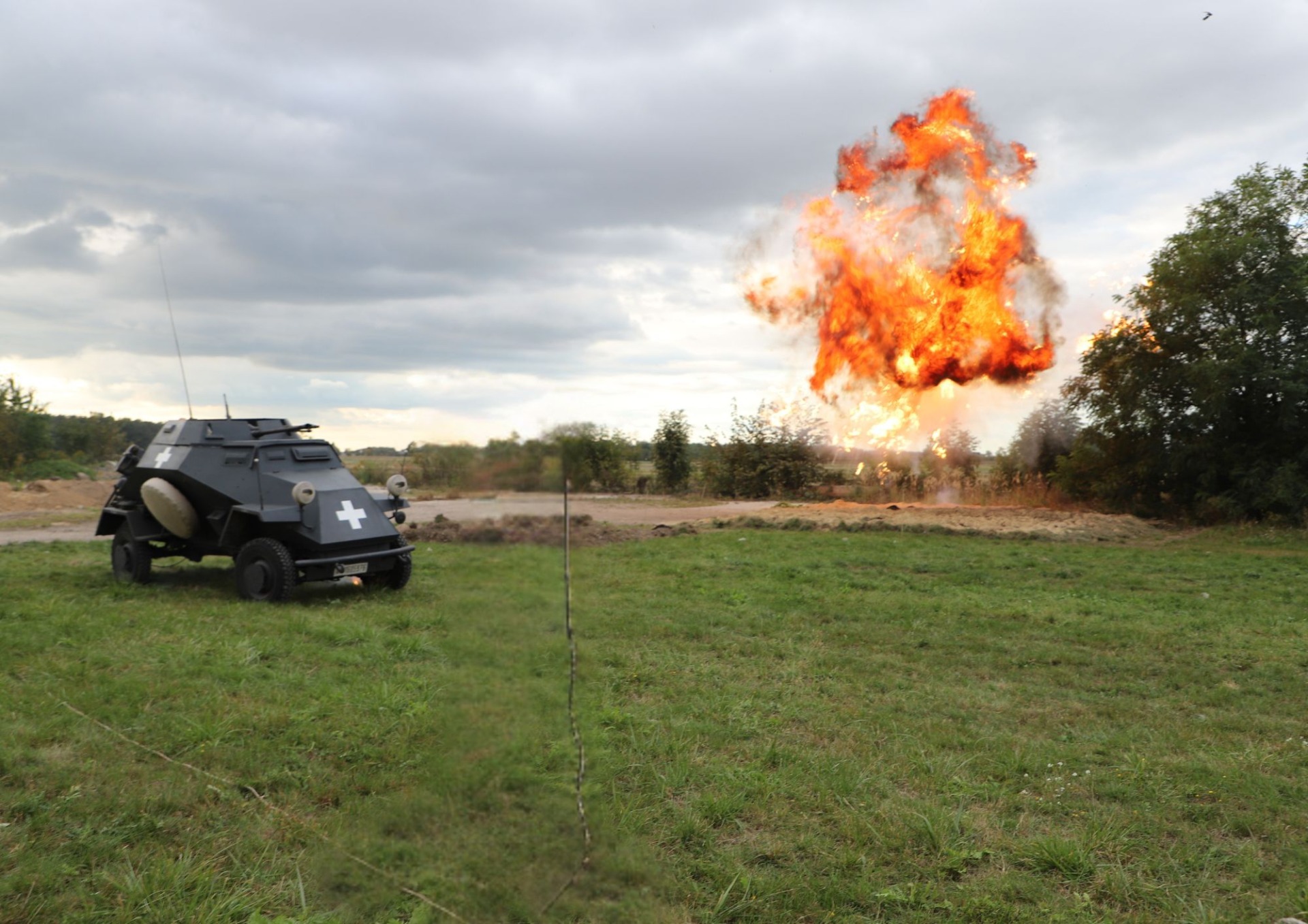 Następnie licznie zgromadzona publiczność przeniosła się w realia 1939 roku, oglądając widowiskową rekonstrukcję bitwy z wielkim zaangażowaniem przygotowaną przez Pana Piotra Paradowskiego i z pełnym profesjonalizmem poprowadzoną przez Pana Zbigniewa Zagajewskiego. W inscenizacji wzięły udział liczne grupy rekonstrukcyjne, a całość uzupełnił autentyczny sprzęt wojskowy, pirotechnika i pojazdy historyczne – w tym m.in. armata przeciwpancerna Bofors wz. 37 mm, karabin UR wz. 35, RKM wz. 28, CKM wz. 30, moździerz wz. 31, a także niemiecki SdKfz. Ponad 30 efektów pirotechnicznych dodatkowo spotęgowało realizm wydarzeń i wywarło ogromne wrażenie na widzach.