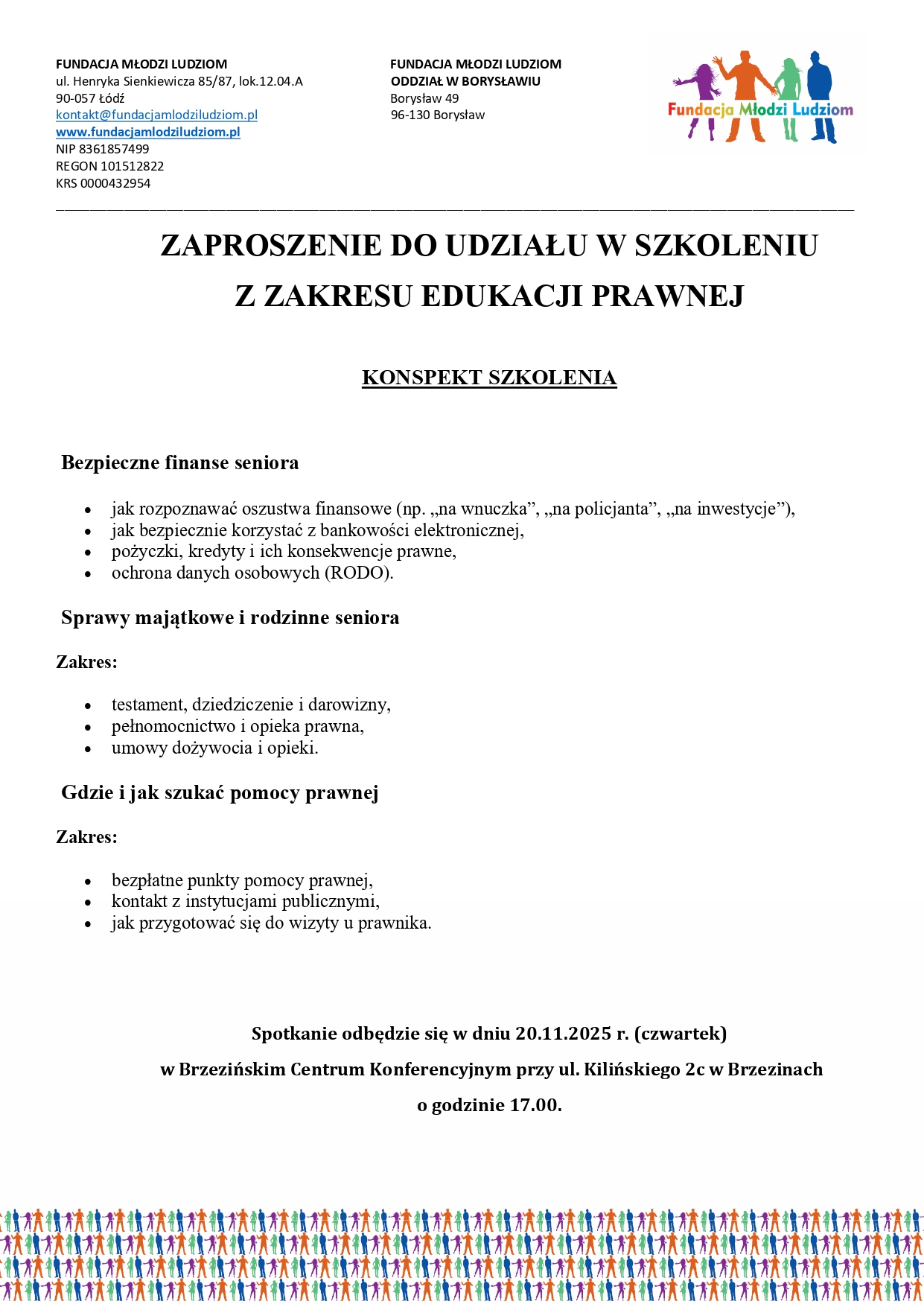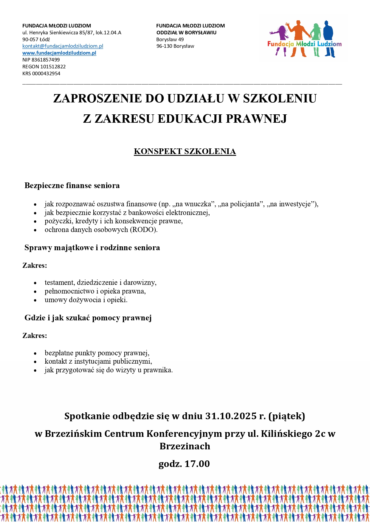 Zaproszenie do udziały w szkoleniu z zakresu edukacji prawnej