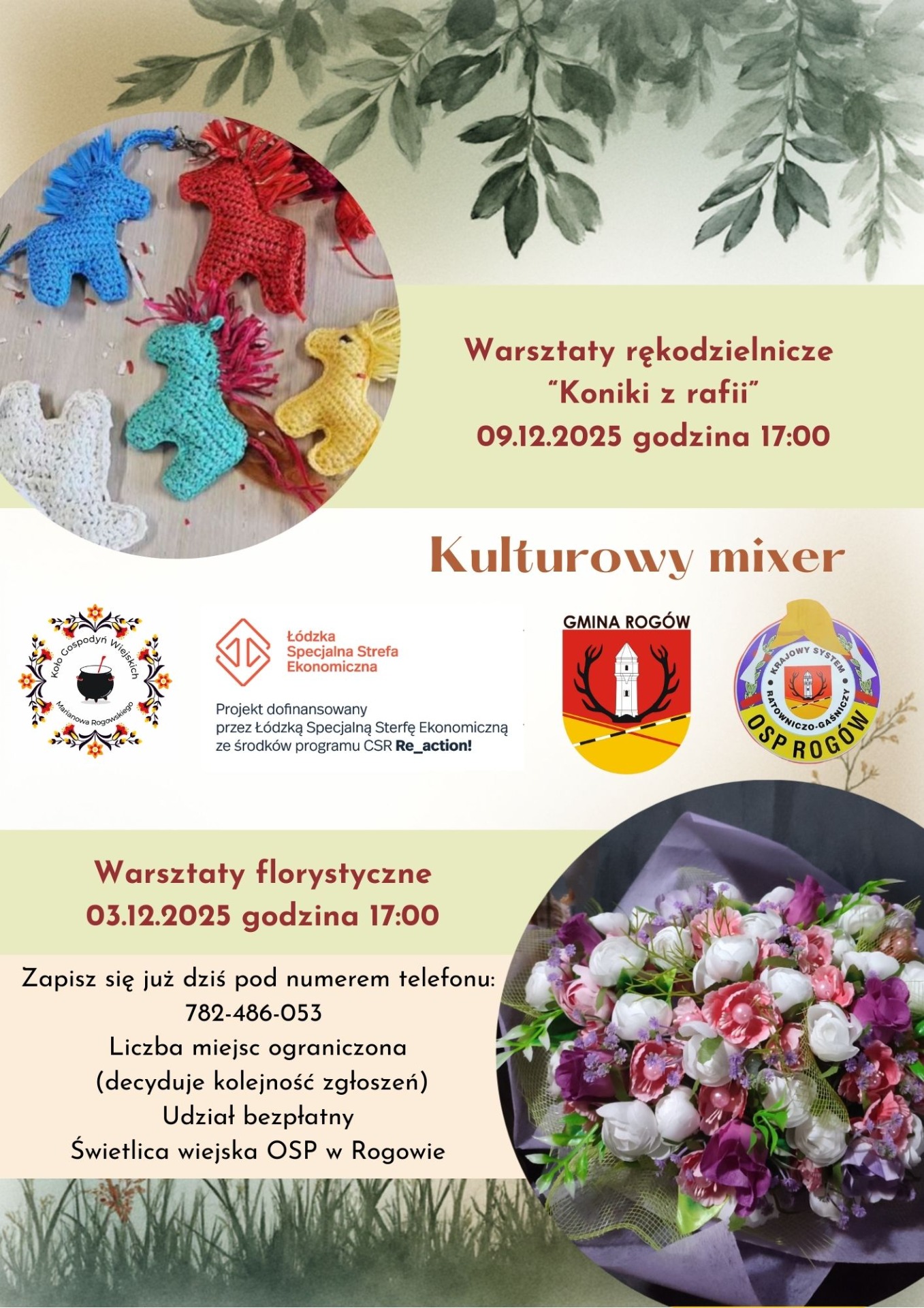 Koło Gospodyń Wiejskich Marianowa Rogowskiego i Łódzka Specjalna Strefa Ekonomiczna serdecznie zapraszają na warsztaty pt.: Kulturowy mixer